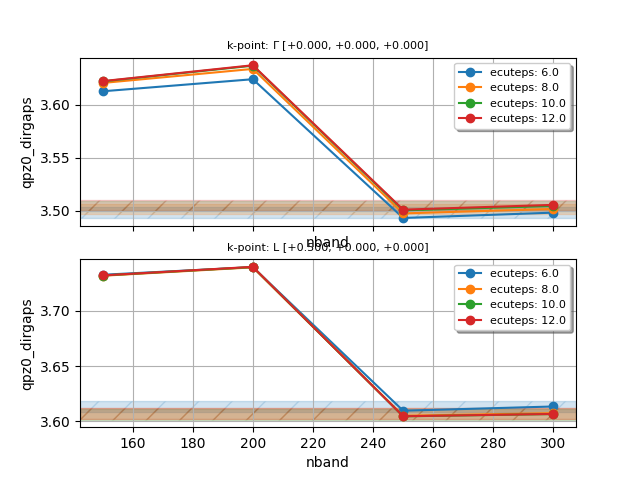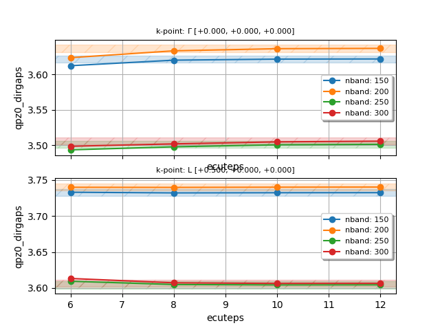 Here, we ask for 400 bands. Let’s recall that in the previous GW tutorial nband = 100 was considered converged within 30 meV, but with GWR we can afford more bands since nband enters into play only during the initial construction of the Green’s function Clearly, when studying new systems, the value of nband needed to converge is not known beforehand. Therefore, it is important to plan ahead and choose a reasonably large number of bands to avoid regenerating the WFK file multiple times just to increase nband.